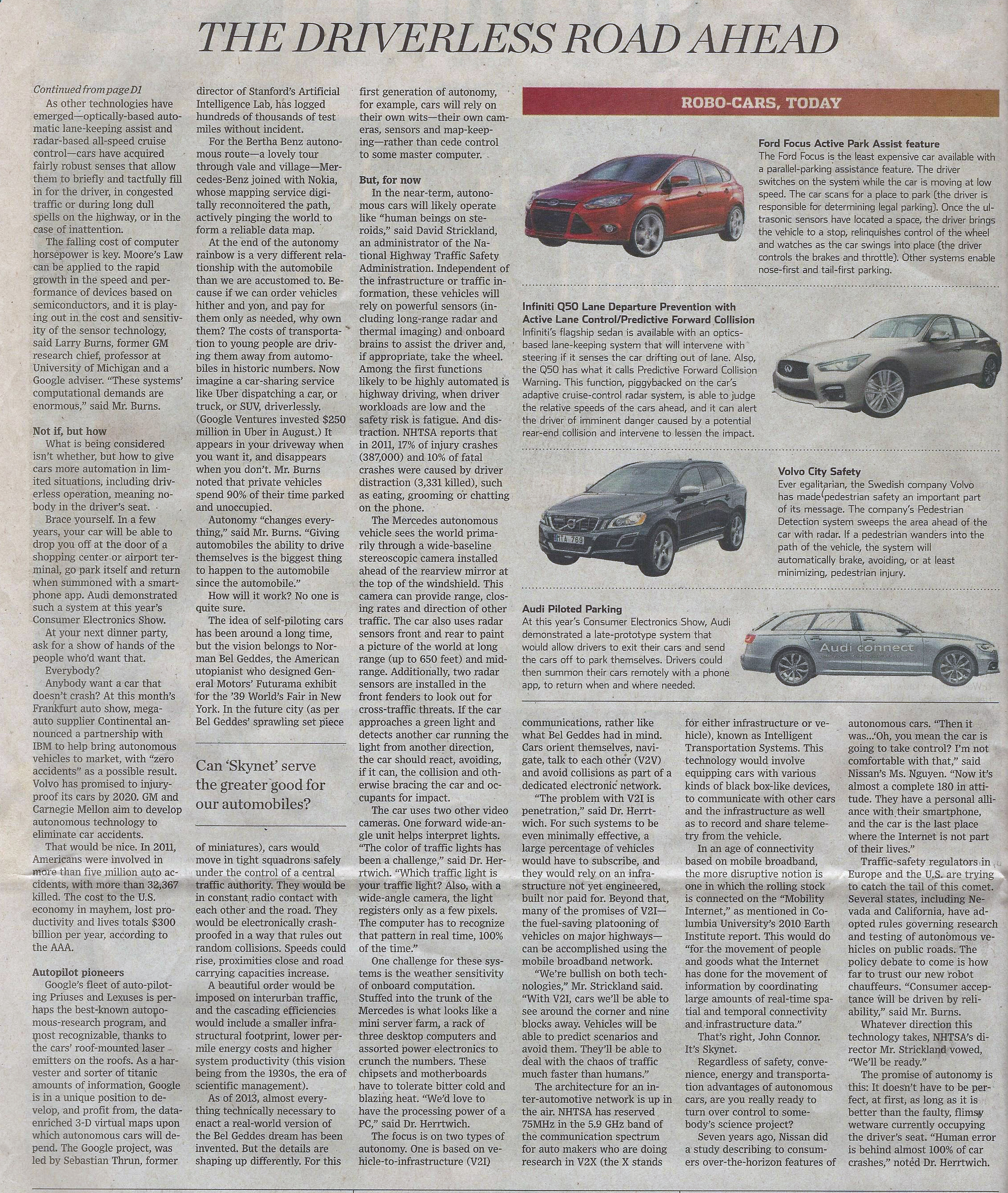 This blog has several articles that I think will sum up for you where we’ve come from and where we’re going in regard to the driverless car. My own opinions, which I’ve given from time to time, could be off base on their projections but one thing is certain: The driverless car is coming and coming soon.